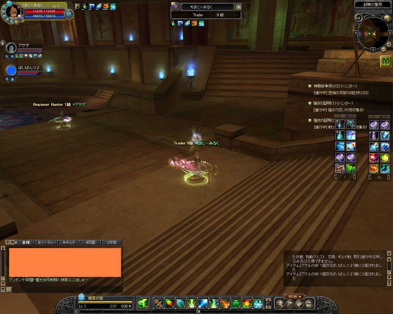 神殿でびゅー。一緒にいるチェイクレさんは同盟さんです。